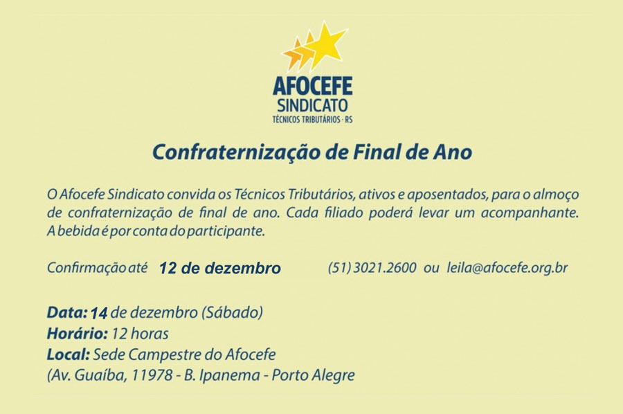 Afocefe convida para confraternização de final de ano