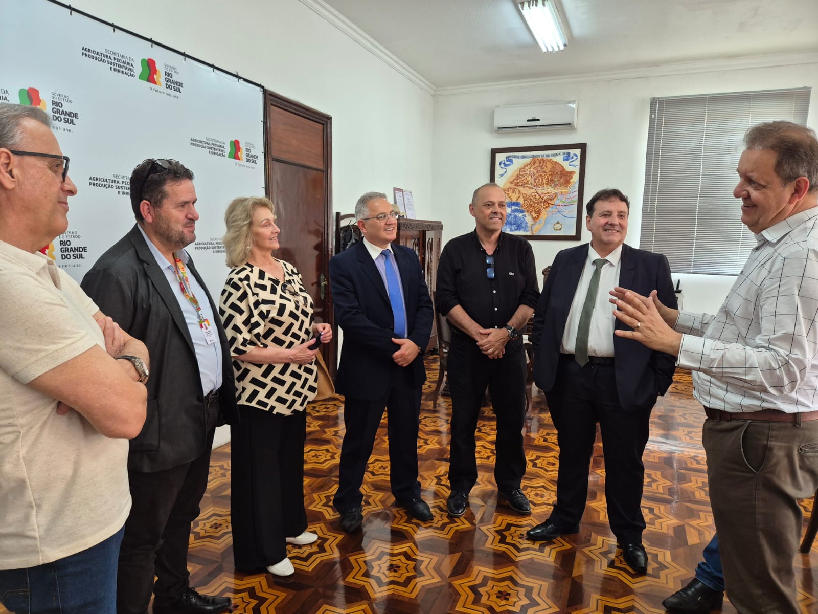 Dando seguimento às reuniões com secretários de Estado, o Afocefe Sindicato esteve nesta quarta-feira, 12, com o secretário da Agricultura, Edivilson Brum. A nova diretoria apresentou as diretrizes de gestão e os pleitos dos Analistas Tributários para o fortalecimento e valorização da carreira. Durante o encontro, foi destacado o trabalho dos Analistas Tributários e sua contribuição para o equilíbrio das finanças públicas, com foco na eficiência da arrecadação e no combate à sonegação fiscal.