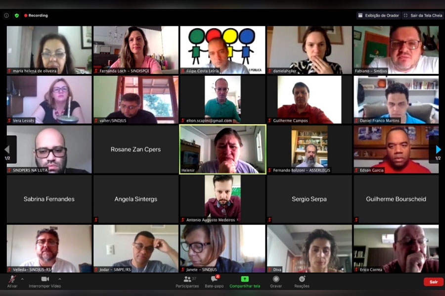 O Afocefe Sindicato, representado pelo presidente Guilherme Campos e pelo diretor Alexandre Luzzi, participou nesta quinta-feira, 23, de reunião da Frente dos Servidores Públicos do RS, realizada de forma virtual.