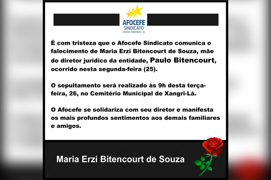 Afocefe lamenta o falecimento da mãe do diretor jurídico, Paulo Bitencourt