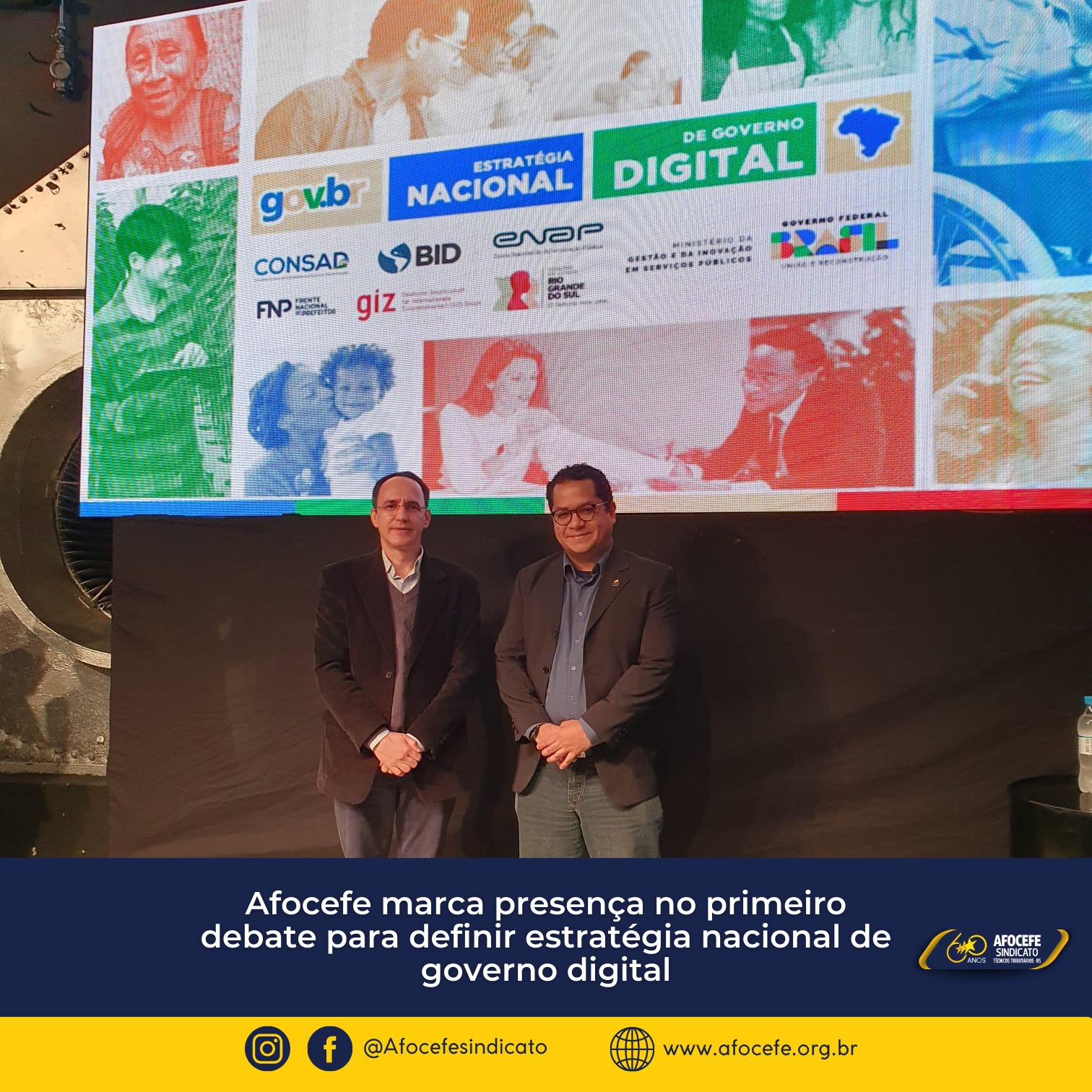 Os diretores do Afocefe Sindicato, Wagner Bomfim e Volnei Piccolotto (adjunto), participaram nesta terça-feira, 15, da 1ª oficina regional da elaboração da estratégia nacional de governo digital, uma iniciativa do Ministério da Gestão e da Inovação em Serviços Públicos.