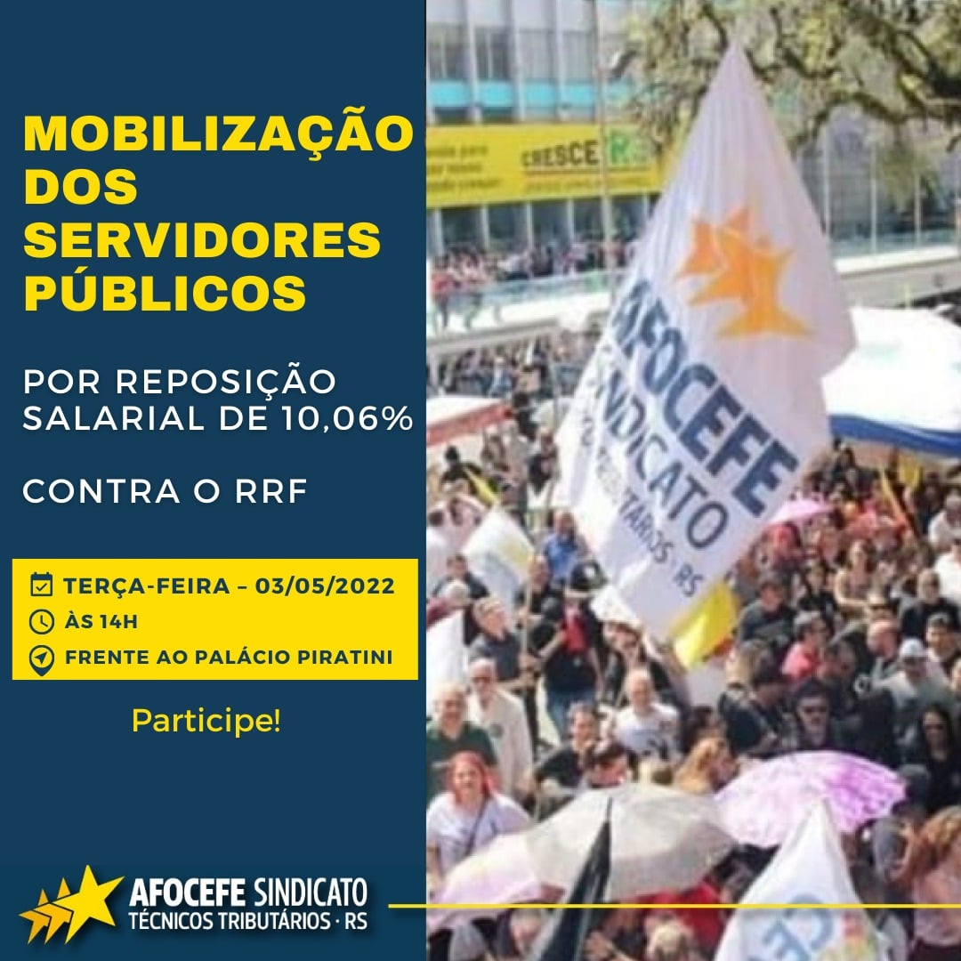 O Afocefe Sindicato se integra à mobilização em defesa da reposição de 10,06% dos salários de todos os servidores públicos e para barrar a votação do PLC 48/2022, que trata do Regime de Recuperação Fiscal (RRF).