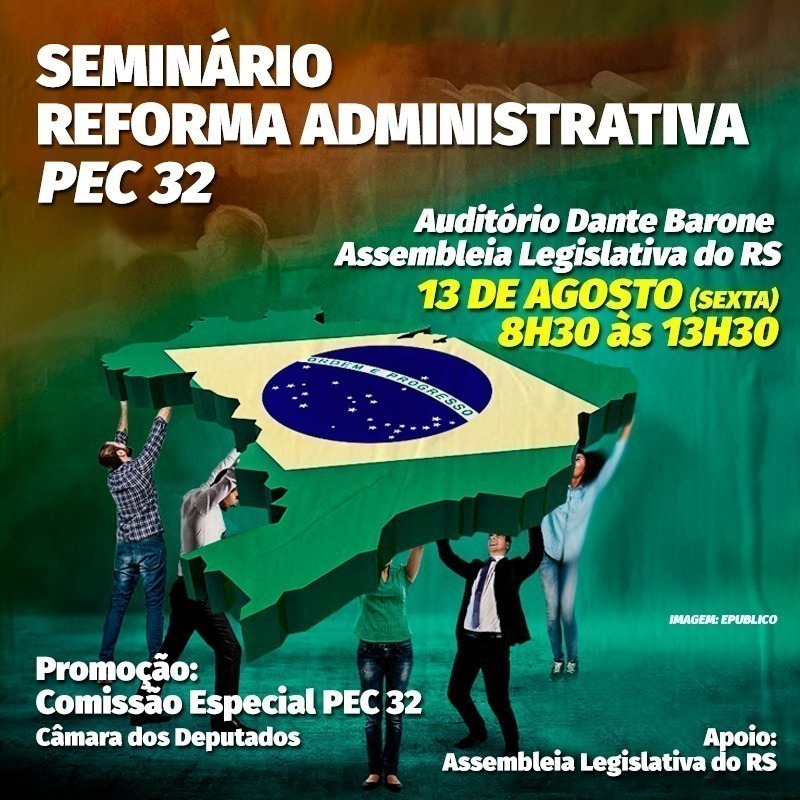 Nesta sexta-feira, 13 de agosto, das 8h30min às 13h30min, no Auditório Dante Barone da Assembleia Legislativa, será realizada audiência pública para discutir a Reforma Administrativa (PEC 32/2020). Promovida pela Comissão Especial da Câmara dos Deputados, o encontro será coordenado pelo deputado federal Paulo Pimenta (PT-RS), membro da Comissão.