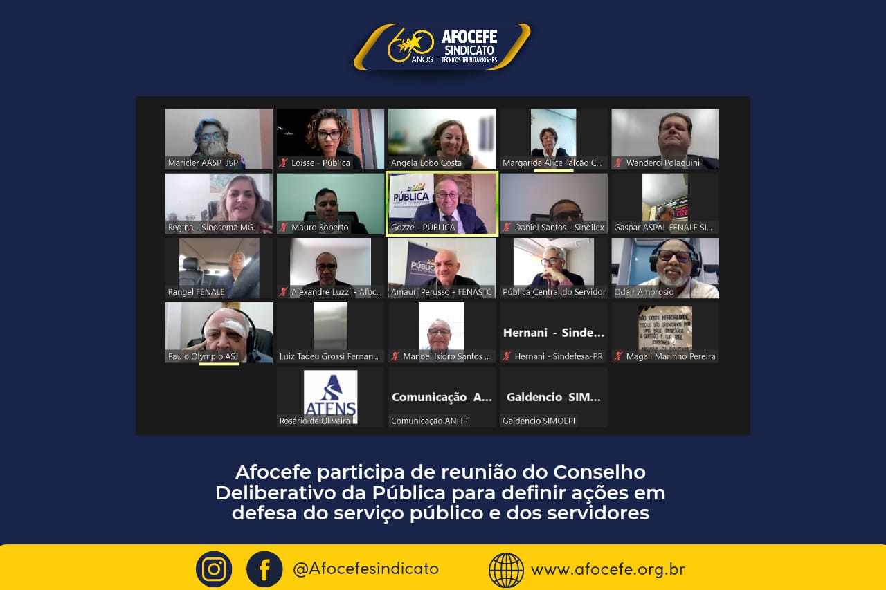O presidente do Afocefe Sindicato, Alexandre Luzzi, participou de reunião do Conselho Deliberativo da Pública Central do Servidor, realizada nesta quinta-feira, 29, de forma virtual.