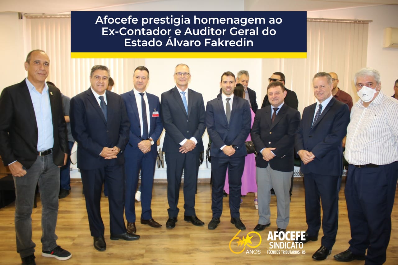 O Afocefe Sindicato participou, na manhã desta quinta-feira, 15, da cerimônia de descerramento da placa em homenagem ao Ex-Contador e Auditor Geral do Estado, Álvaro Fakredin, realizada no auditório da Secretaria da Fazenda.O presidente Alexandre Luzzi, a diretora Mariusa Fernandes e o diretor Rodrigo de Castro Silveira prestigiaram a solenidade, que contou com a presença do secretário da Fazenda, Leonardo Busatto, subsecretários, autoridades dos três poderes, dirigentes de entidades e servidores da Sefaz.