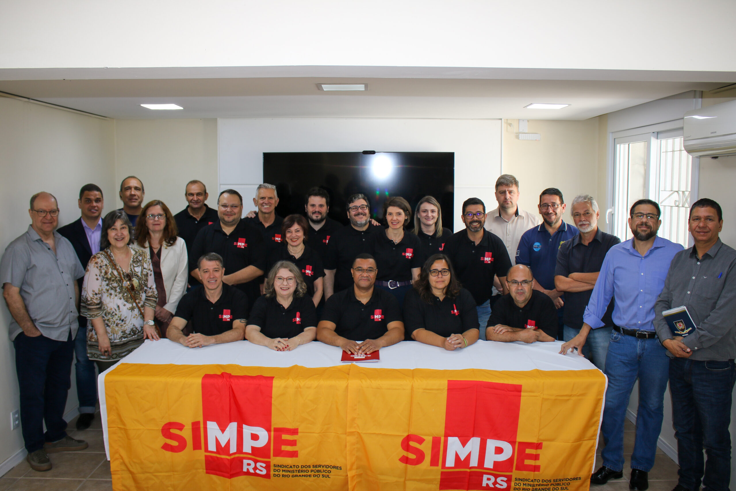 No Dia do Servidor(a) Público(a), o presidente do Afocefe Sindicato, Alexandre Luzzi, e a diretora Claudia Meyer marcaram presença na sede do Sindicaixa para prestigiar a posse da chapa “Novos Avanços”, eleita com 93,6% dos votos para comandar o Sindicato dos Servidores do Ministério Público do Rio Grande do Sul (SIMPE-RS) no triênio 2024/2027.