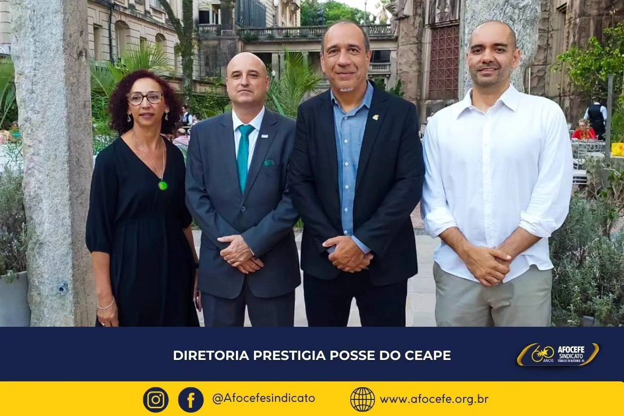 A Diretoria do Sindicato Afocefe, representada pelo presidente Alexandre Luzzi e pela diretora Mariusa Santos, prestigiou a posse da nova diretoria do CEAPE-Sindicato. A cerimônia ocorreu na última quinta-feira, dia 07, no Café da Catedral, no Centro da Capital. Além dos diretores, também foram empossados os novos integrantes do Conselho Deliberativo da entidade.