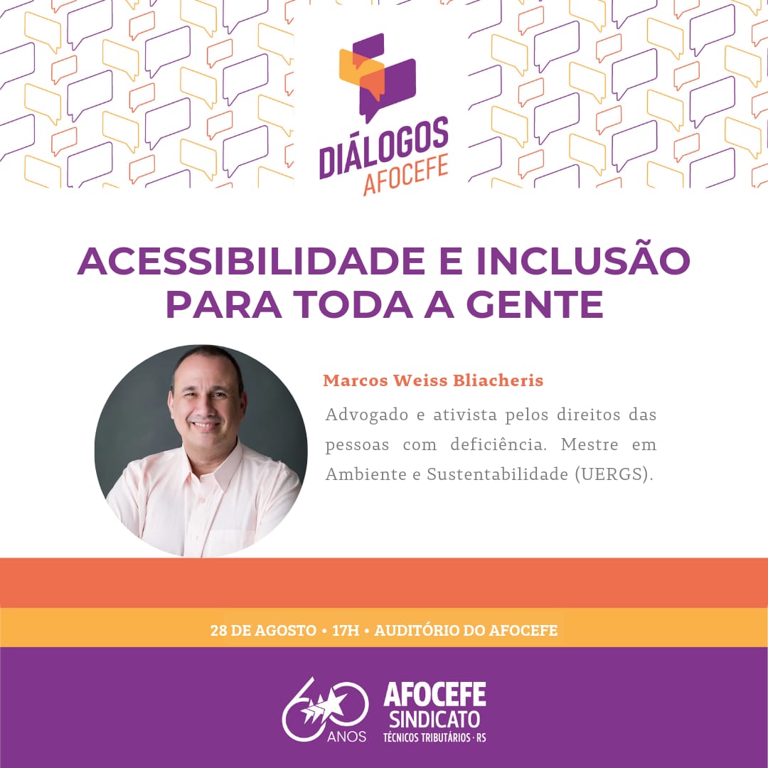 Na semana estadual da pessoa com deficiência, o Afocefe amplia o debate com Técnicos Tributários da Receita Estadual, demais carreiras de servidores públicos e sociedade em geral, e realiza a 3ª edição do Diálogos Afocefe, que terá como tema ‘’Acessibilidade e Inclusão para toda a gente’’.