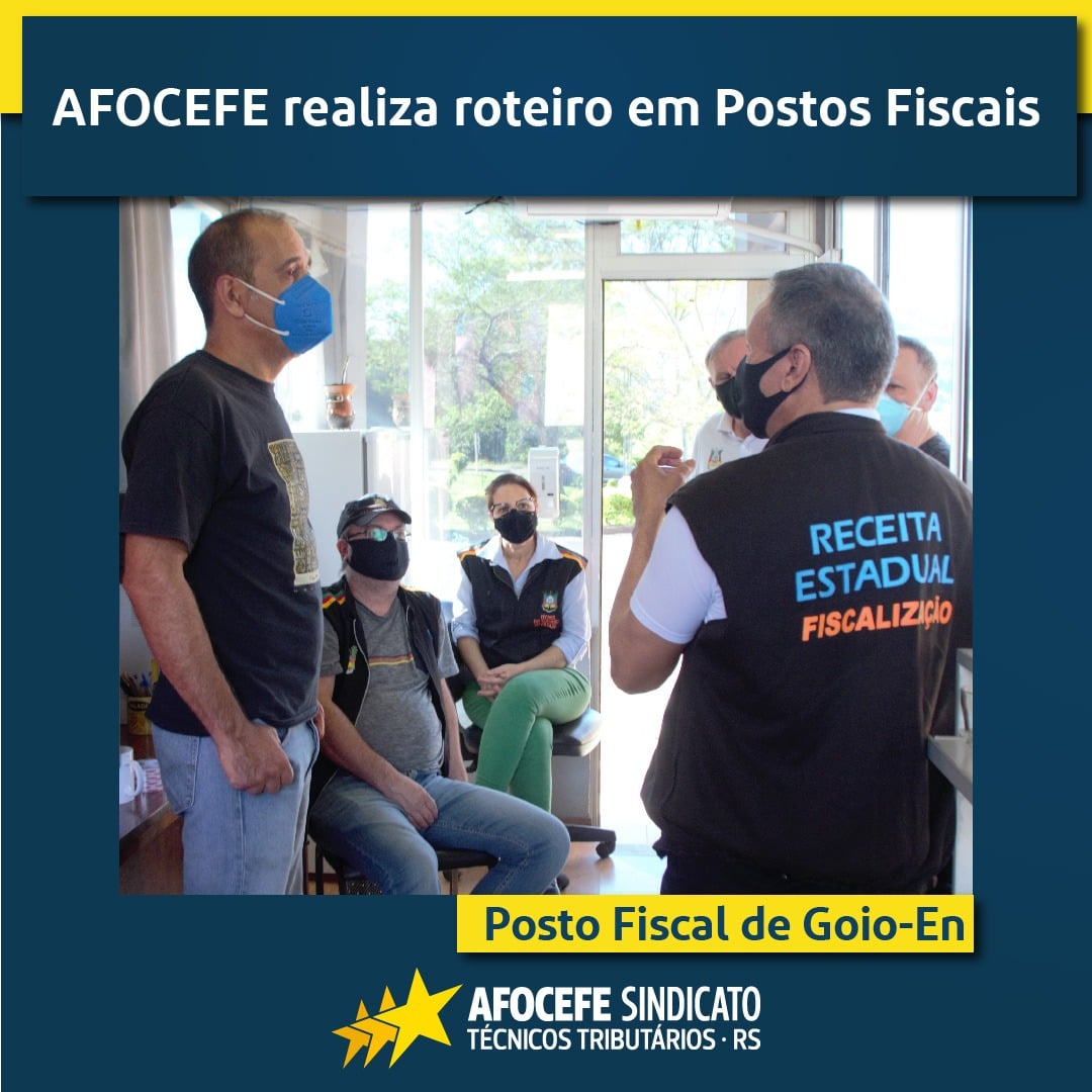 O Afocefe Sindicato, representado pelo diretor Alexandre Luzzi, realizou na semana passada roteiro pelos Postos Fiscais de Goio-En, Iraí e Estreito. Na semana anterior, foi visitado o Posto Fiscal de Torres.