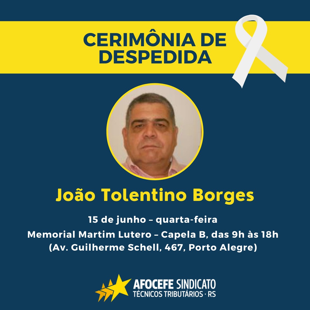 O Afocefe Sindicato informa que o horário de expediente em sua sede administrativa nesta quarta-feira, 15, encerrará às 13h30min em decorrência da cerimônia de despedida do TTRE João Tolentino Borges, que faleceu na segunda-feira, 13.