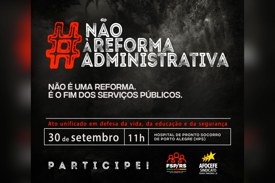 DIA 30 DE SETEMBRO - ATO UNIFICADO EM DEFESA DO SERVIÇO PÚBLICO E CONTRA A REFORMA ADMINISTRATIVA - AFOCEFE SINDICATO - Analistas Tributário • RS