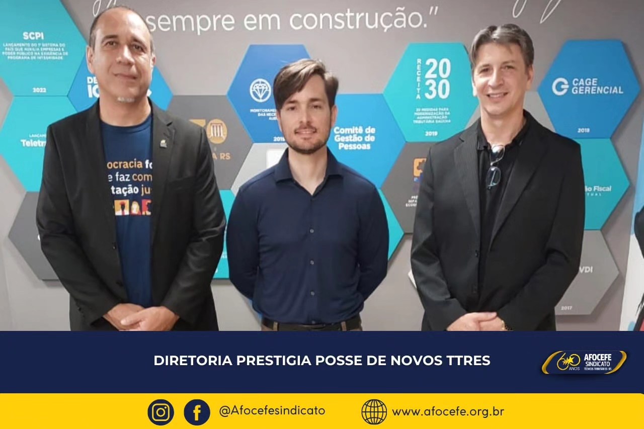 A diretoria do Afocefe esteve na solenidade e prestigiou o juramento que Rafael prestou em nome do grupo de TTREs que foram nomeados no dia 12, e que não puderam comparecer ao ato da posse. São eles, Paulo Jeferson Sousa da Silva, Alexandre Massaneiro Luciano, Jordani Comin Weber, Thiago Queiroz Pereira e Rafaela Brittes Dill.
