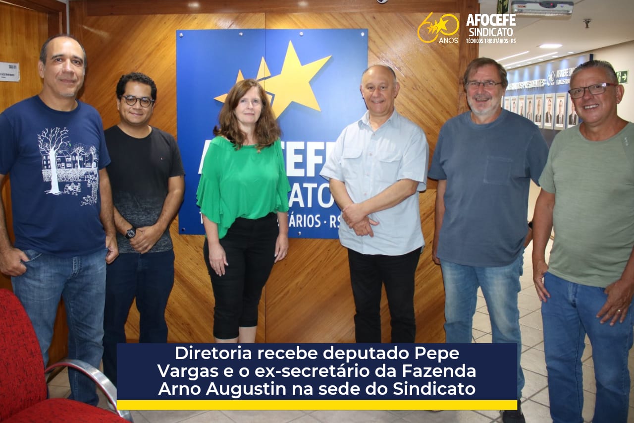 A diretoria do Afocefe Sindicato recebeu na manhã desta segunda-feira, 06, o deputado estadual Pepe Vargas (PT) e o economista Arno Augustin, ex-secretário estadual da Fazenda e ex-secretário do Tesouro Nacional.
