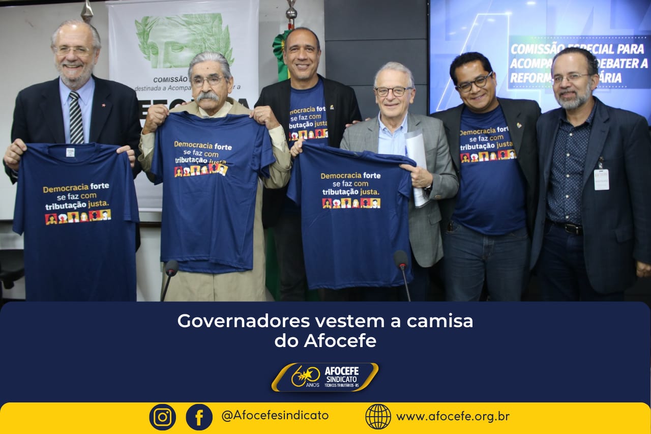 Ao final do debate, os dirigentes do Afocefe presentearam os ex-governadores com a camisa da nova campanha do Sindicato: ‘’Democracia forte se faz com tributação justa’’.