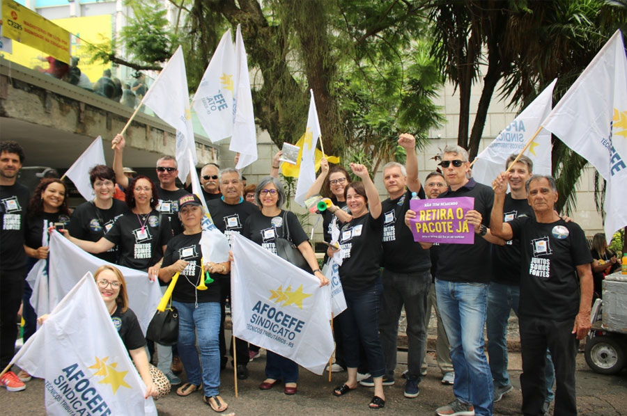 Técnicos Tributários de diversas regiões do Estado estiveram em Assembleia Geral na Praça da Matriz pela retirada do projeto, junto com as demais categorias de servidores. Desde o início da manhã, os dirigentes do Afocefe estiveram mobilizados no Parlamento, com deputados e equipes técnicas das bancadas.