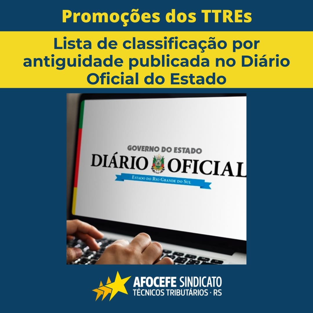 Foi publicada no Diário Oficial do Estado na edição de terça-feira, 12, a lista de classificação para promoções de Técnicos Tributários da Receita Estadual por antiguidade no cargo.