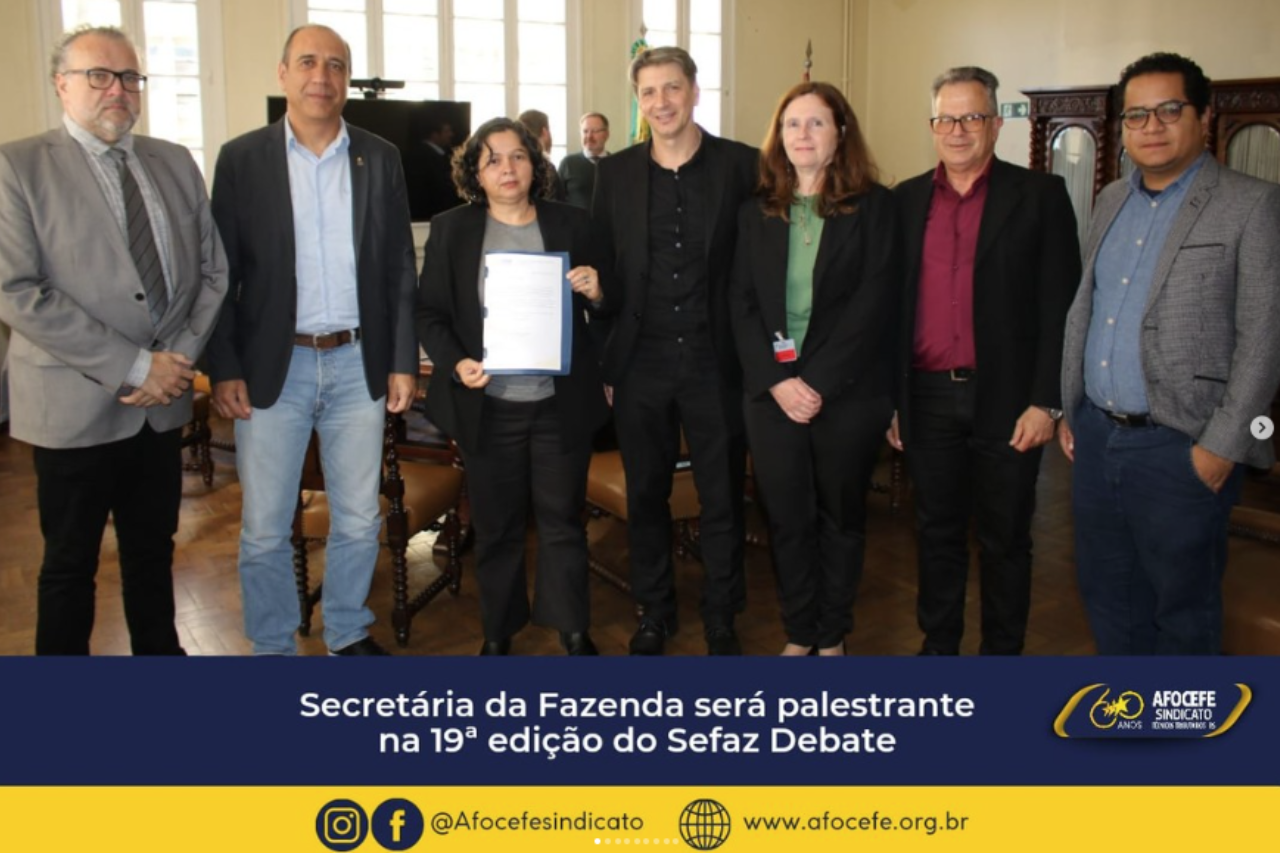 A diretoria do Afocefe Sindicato reuniu-se nesta sexta-feira, 25, com a secretária da Fazenda, Pricilla Santana e demais integrantes da equipe diretiva da Sefaz. Foi oficializado à secretária convite para ser painelista da 19ª edição do Sefaz Debate, que tratará sobre o impacto da Reforma Tributária nas carreiras fazendárias e será realizado no dia 05 de outubro no Teatro Dante Barone da Assembleia Legislativa. A secretária confirmou a participação no evento.