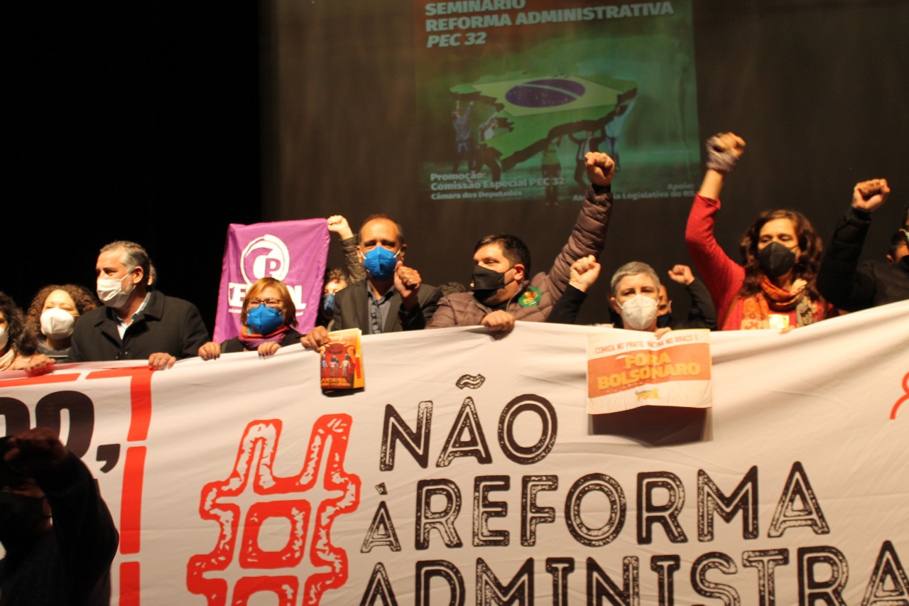 Para alertar a população, com esclarecimentos sobre os graves efeitos da Reforma Administrativa (PEC 32) nos serviços públicos e sensibilizar os parlamentares para que votem contra esta proposta do governo federal, ocorreu, na sexta-feira, 13, no Teatro Dante Barone da Assembleia Legislativa, seminário promovido pela Comissão Especial da Câmara dos Deputados que trata deste tema.