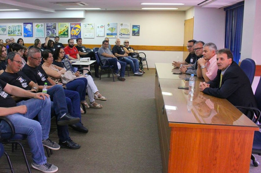 Pela manhã, os Técnicos Tributários participaram de assembleia geral no Afocefe, com a presença do vice-presidente do Conselho Deliberativo, Adelar Vendruscolo. O presidente Guilherme Campos, o vice-presidente, Altair Rech Ramos, e o diretor jurídico, Paulo Bitencourt, relataram as reuniões com os deputados e equipes técnicas das bancadas para construção de emendas para reduzir o impacto das perdas aos servidores. ‘’A reforma previdenciária do Estado é mais perversa do que a federal. O Afocefe, junto com a União Gaúcha em Defesa da Previdência Social e Pública vai ingressar com ação direta de inconstitucionalidade desta Lei, que prevê alterações drásticas no Estatuto dos Servidores’’, afirmou Guilherme Campos.