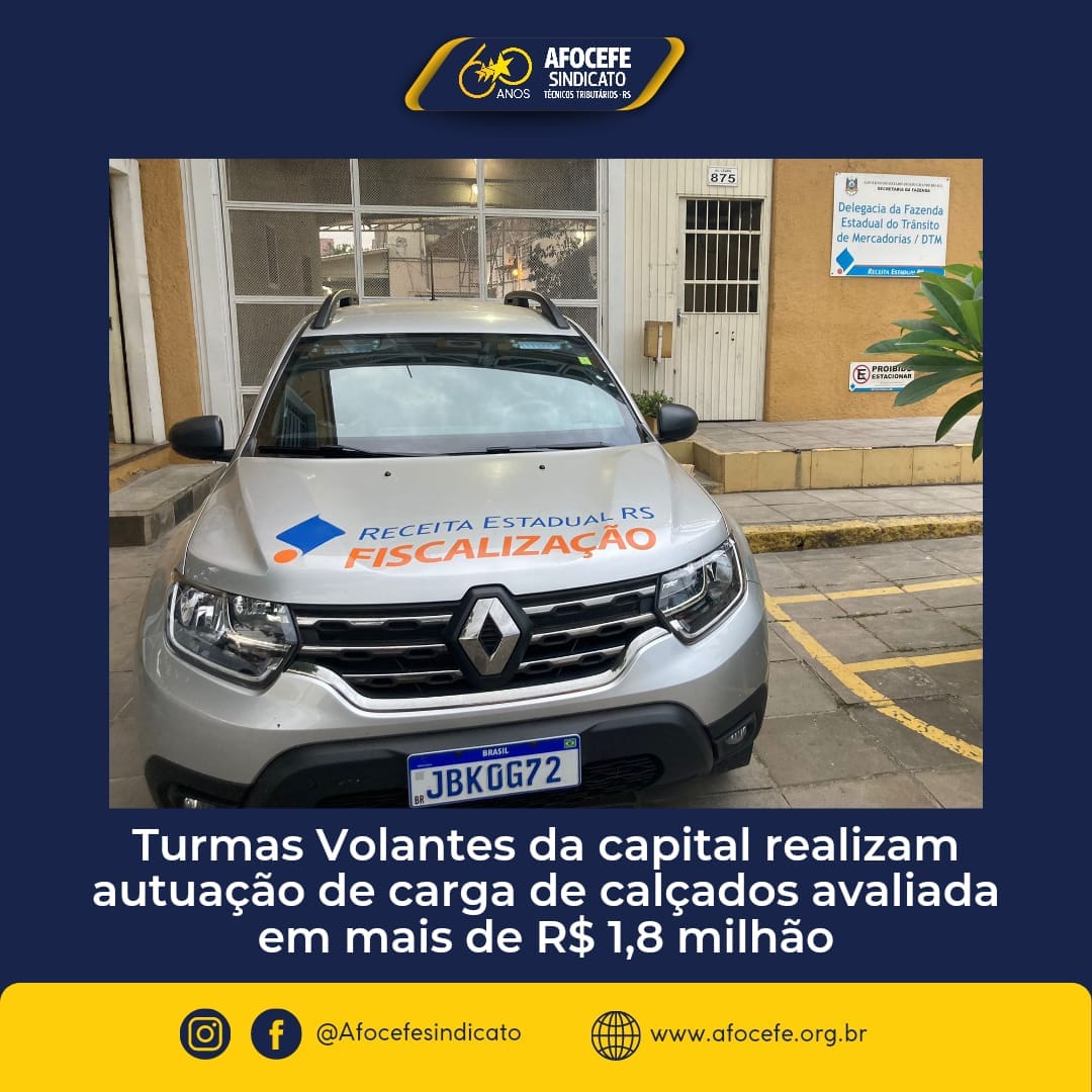 Técnicos Tributários das Turmas Volantes da capital autuaram carga de calçados, avaliada em R$ 1.821.200,00, com documentação inidônea para a operação.