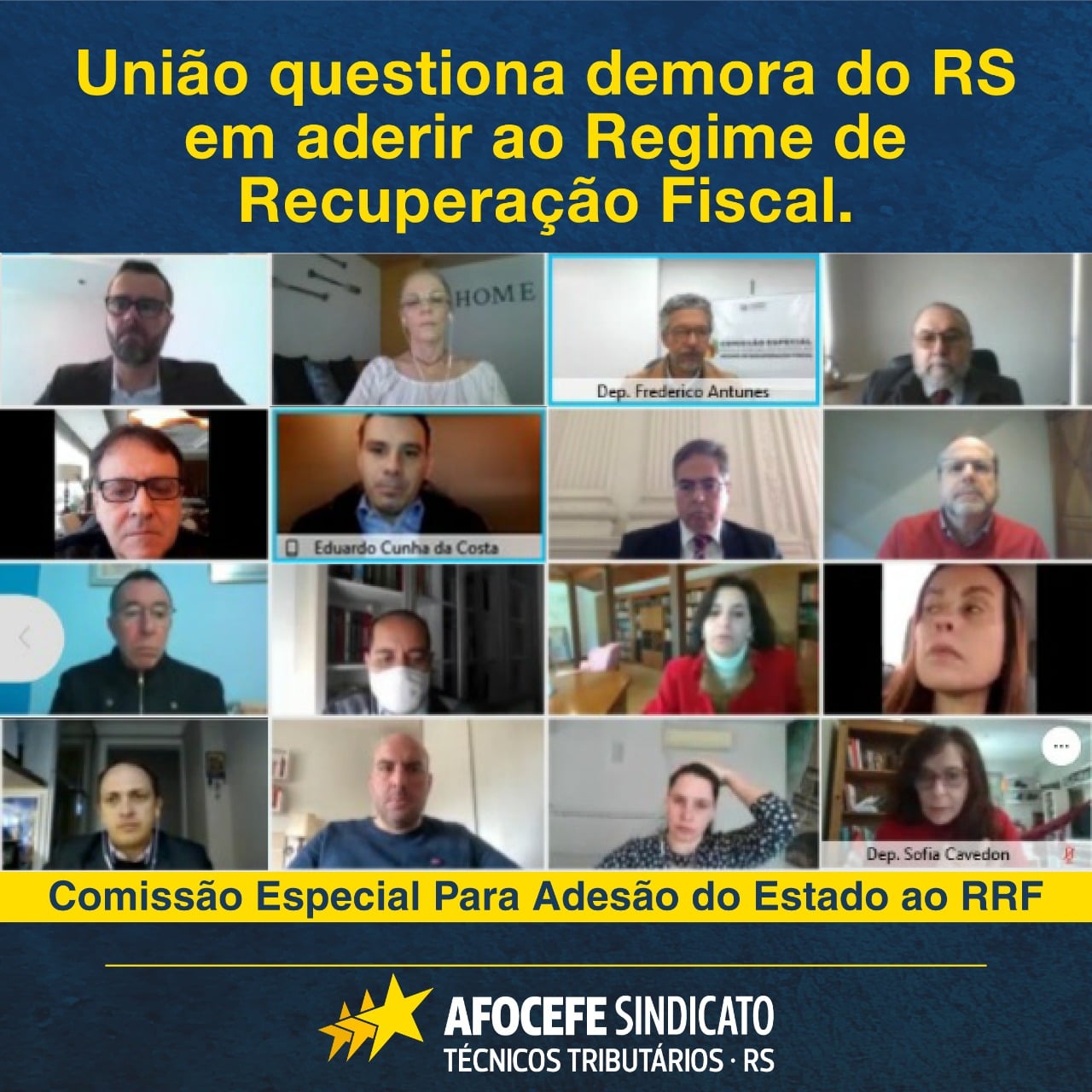 O presidente do Afocefe, Guilherme Campos, participou da reunião. Os aspectos financeiros e jurídicos para o ingresso do Estado no RRF, além dos riscos de cassação da liminar, em vigor desde agosto de 2017, que permitiu ao Estado suspender o pagamento das parcelas da dívida nesse período, e o questionamento da União sobre a demora da adesão do Rio Grande do Sul ao Regime de Recuperação Fiscal nortearam as discussões.